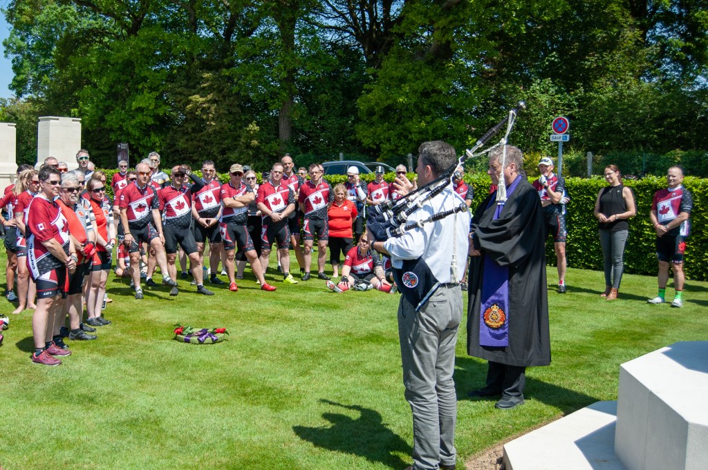 They were practicing and although it certainly wasn’t the Bagpipers original plan, he played his pipes as part of our Ceremony of Remembrance. How much more powerful this was for us all. He had chosen to teach his students in the Canadian graveyard. We were just an accident that happened along and were privileged to exeperience this unofficial tribute to our men.