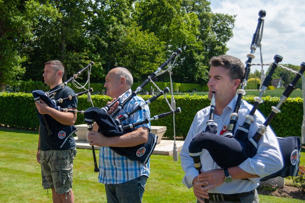 We arrived at the Dieppe Commonwealth Graveyard and a local man was teaching two other men how to play the bagpipes.