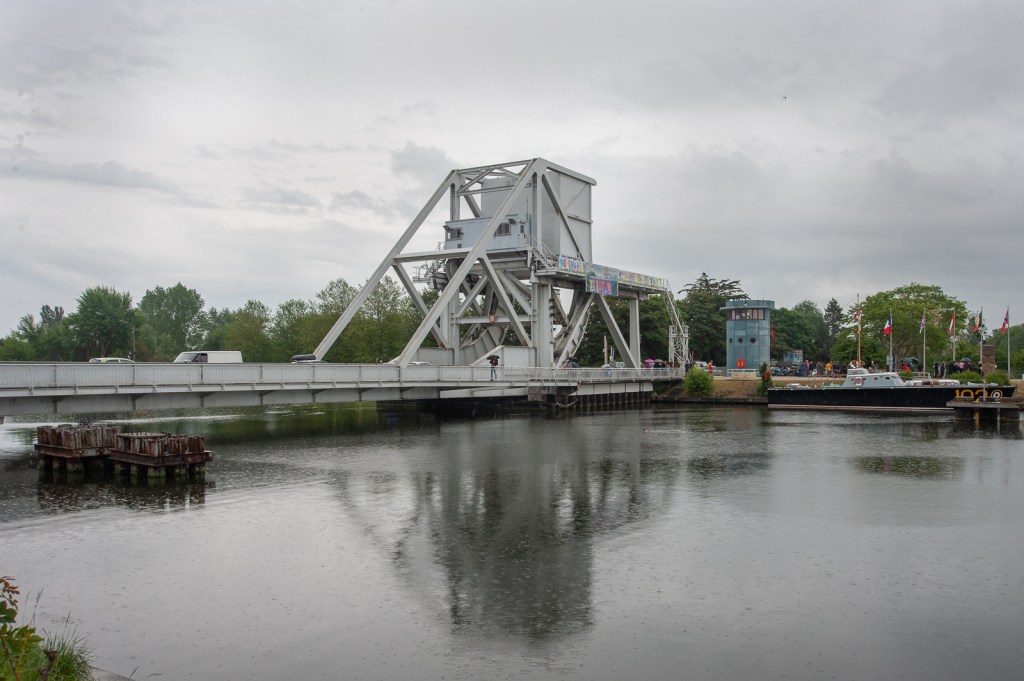 A few days later we arrived at Pegasus Bridge, a key objective in March 1944. The Bridge and town were in high ceremony when we rode our bikes in. All of Normandy was celebrating D-Day. We rode across the bridge to the cafe immediately east of it. An elderly woman and her family own the cafe on the banks of the canal. She was inside on this day enjoying the 75th Anniversary clebrations. She was also there in 1944, hiding the basement that night while the Germans did their best to prevent the Allies from crossing the bridge.